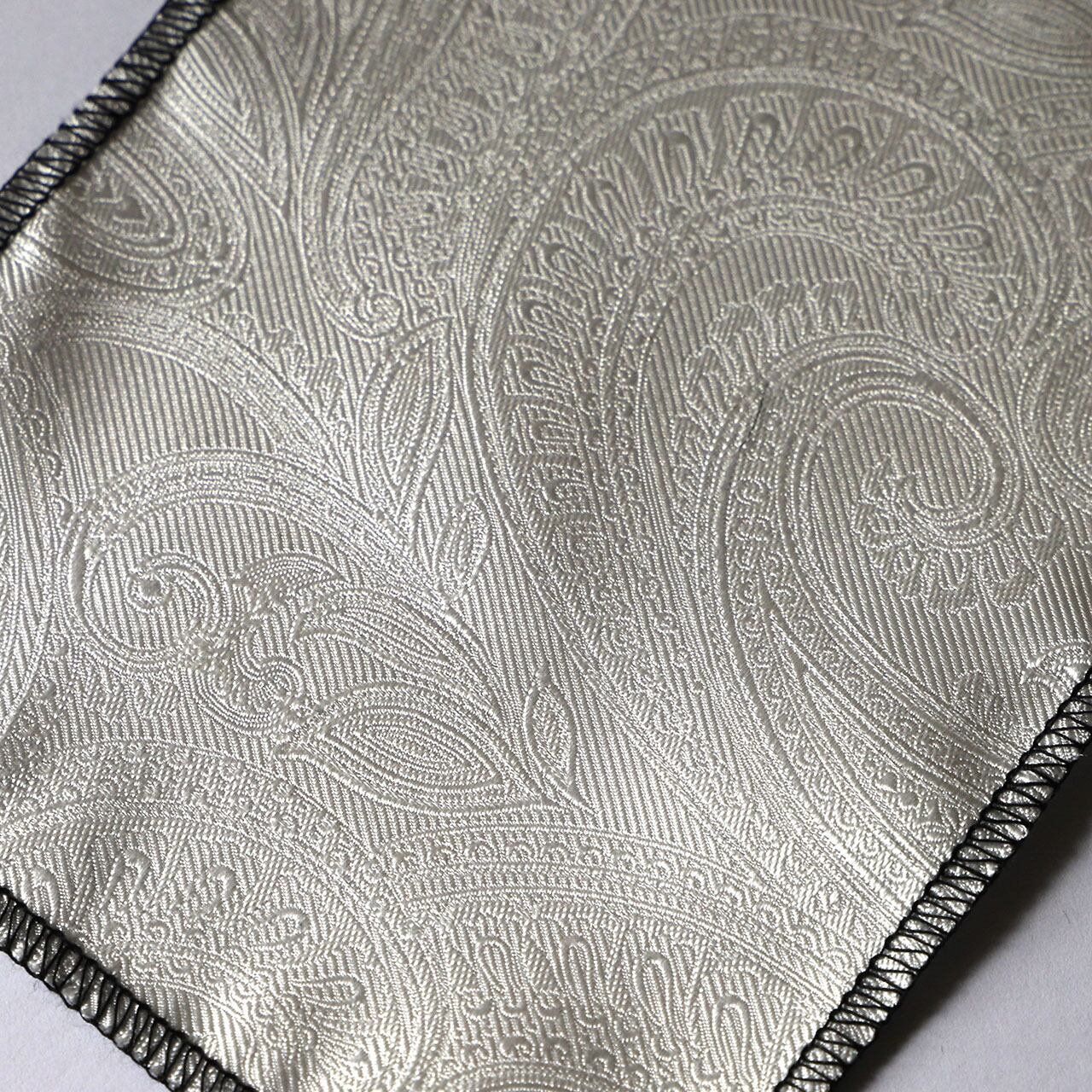 こちらのオーダーネクタイは、ペイズリー織柄をモチーフにしたエレガントなデザインが特徴です。ペイズリーは、その豊かな歴史と華やかな模様で、多くの人々に愛され続けてきました。この文様は、シルクの上質な光沢と相まって、着用者に洗練された印象を与えます。