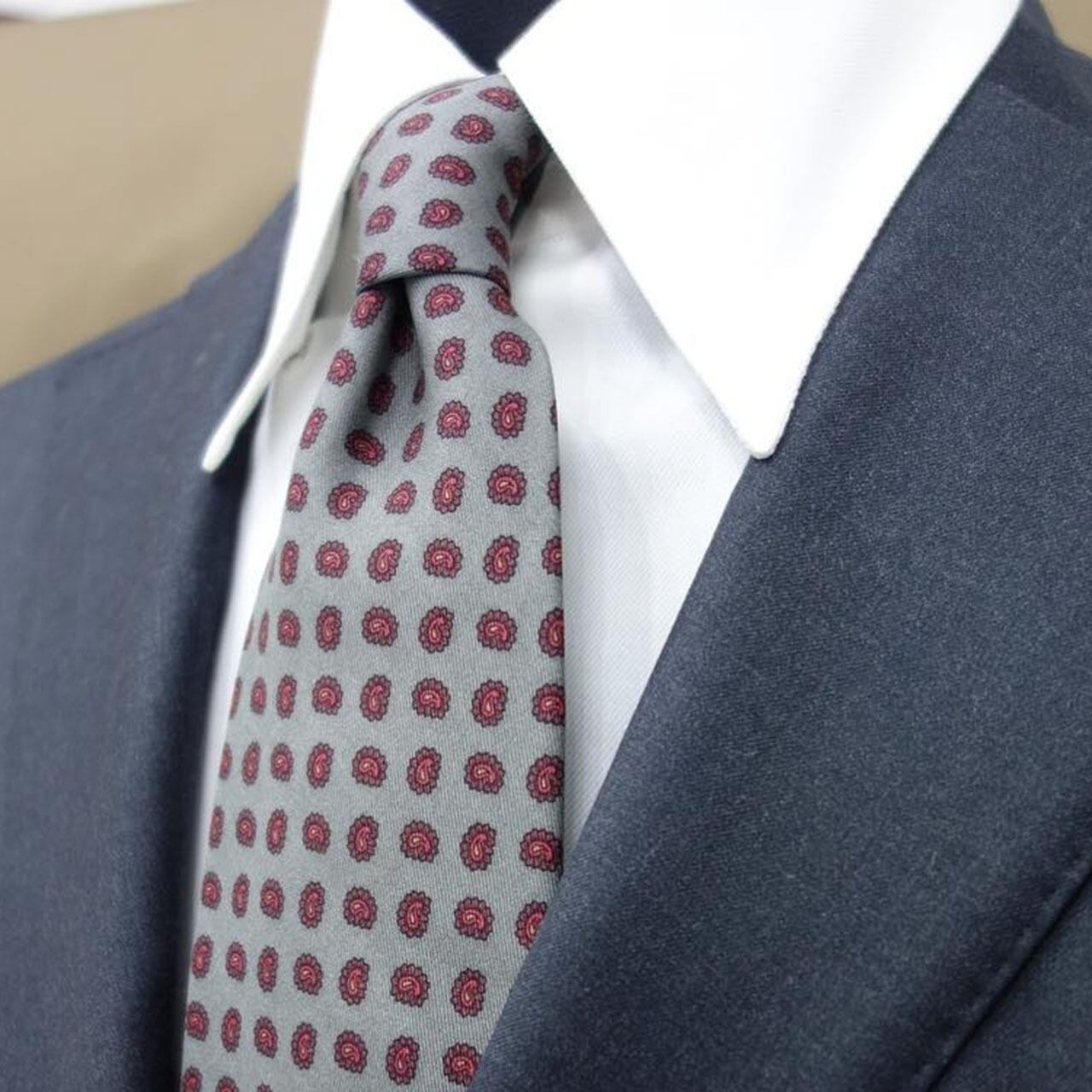 小柄のペイズリーで、スーツは勿論、カジュアルジャケットにも相性が良いネクタイとなっています。